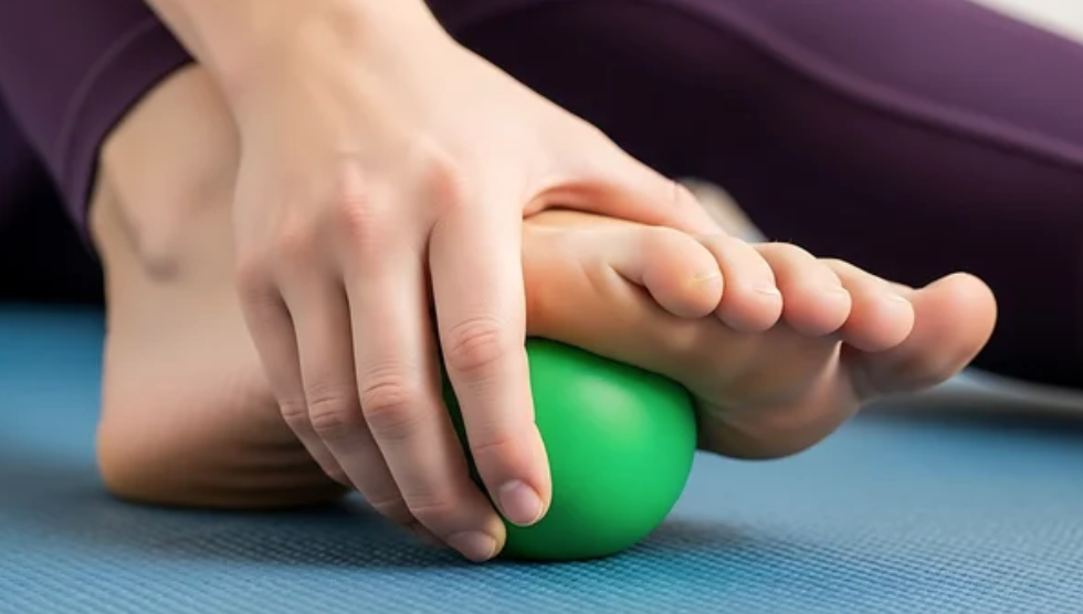 ① テニスボールで足裏をゆっくり転がす(左右1〜2分)